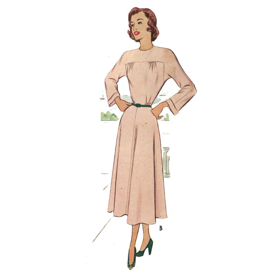 1930s Pattern Classic Frock Dress - Bust 34" (86.4cm)