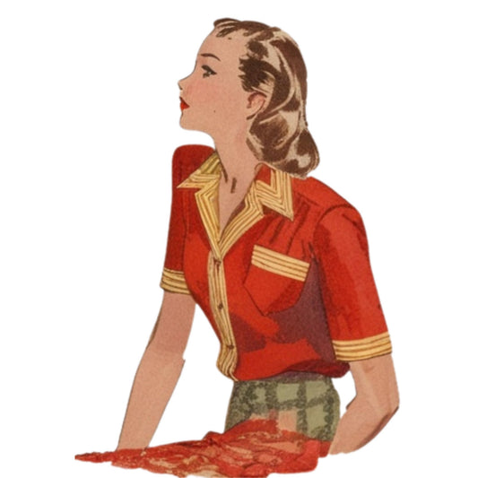 PDF - Vintage 1940'er mønster - Rockabilly Winged Collar Bluse - Buste 36" (91,4 cm) - Download