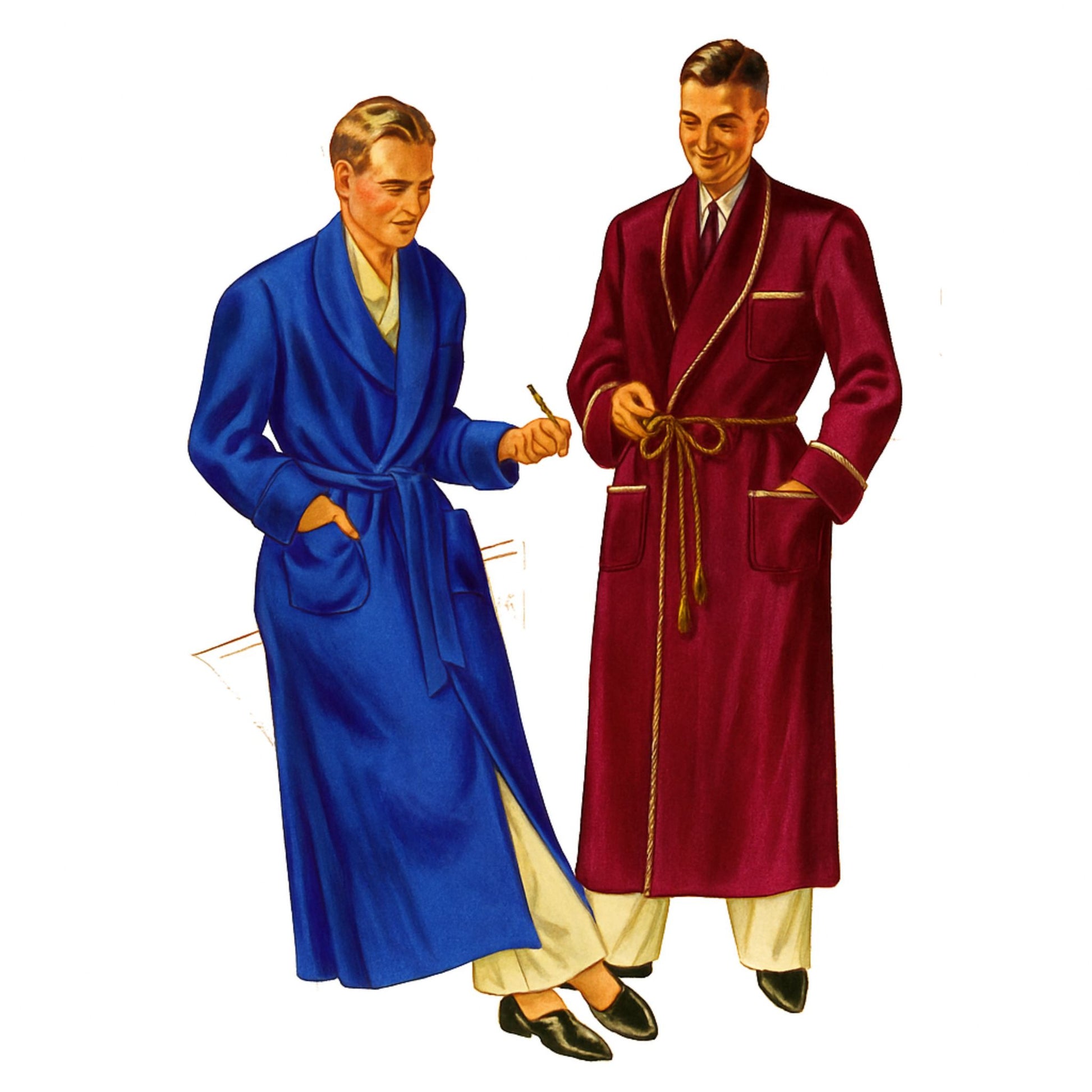 Du vil være billedet på sofistikering i vores 1940'er debonair morgenkåbe med rullekrave eller rygejakke! Kåben i fuld længde har en smart, rulle tilbage, sjal-krave, hofte- og brystlommer samt dybe manchetter og et bindebælte for at afslutte det.