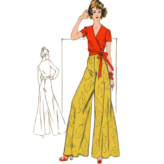 PDF - Modello anni '70, Pantaloni Palazzo e Blusa Avvolgente - Circonferenza seno 32.5" (82.5cm) - Scarica