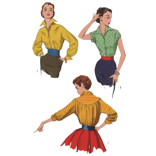 PDF - Modello di cucito anni '50: Blusa elegante Pin Up, Blusa 'Arietta' - Giro petto 30” (76.2cm) - Download