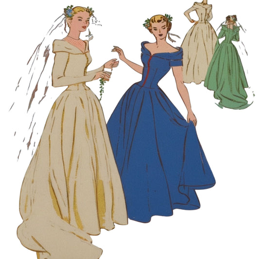 PDF - Modello anni '40, abito da sposa regale con spalle scoperte, strascico - Busto 34" (86 cm) - Scarica