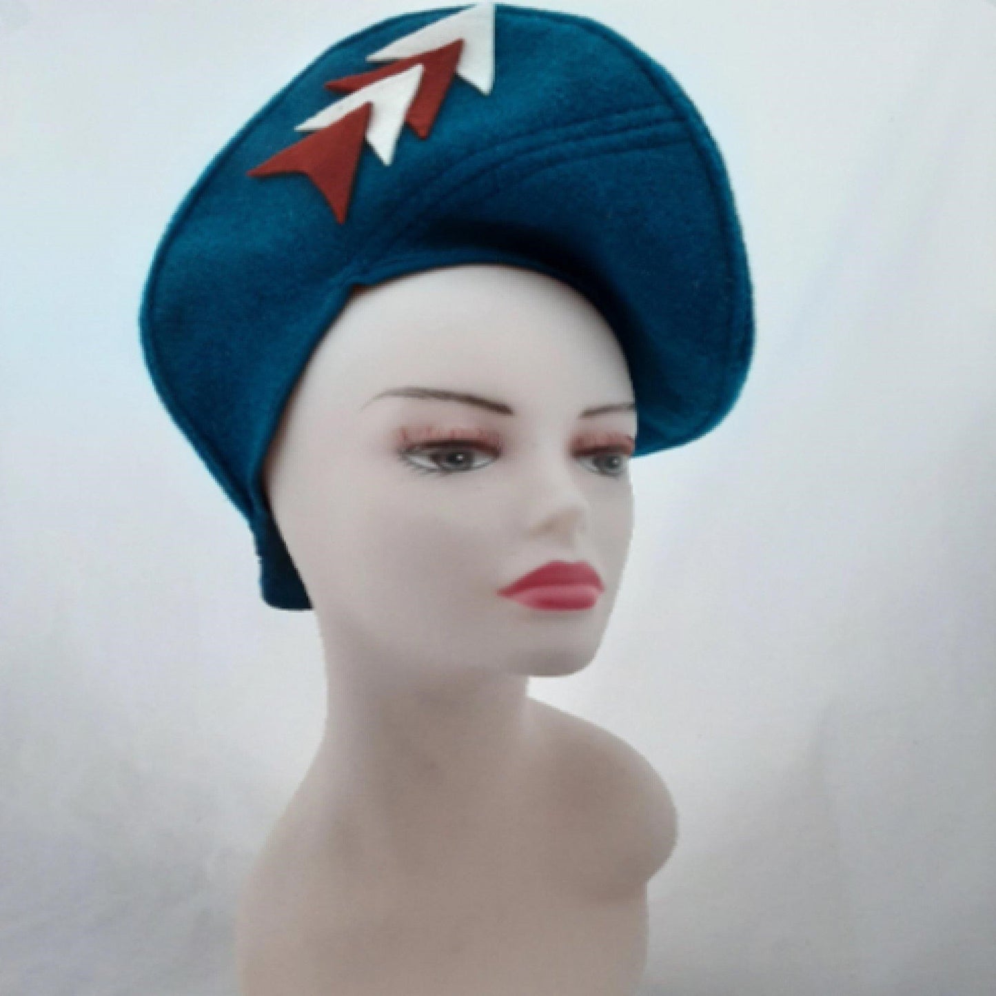 Verwen jezelf met een hoed uit de jaren 40! Een elegante retro-vintage hoed, perfect geschikt voor een optionele verenversiering. Een eenvoudige hoed die leuk gemaakt kan worden. Maak het van stof, vilt, stro of fluweel, stapel het hoog op met veren, linten, strikken, fruit, bloemen of zelfs kralen. Zet het vast met hoedenspelden en draag het in een vrolijke, leuke hoek. Een fantastische oorlogshoed uit de jaren 40.