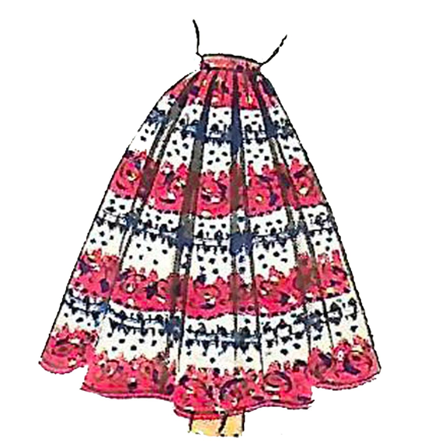 Bredde rund nedre kant av skjørtet, størrelse 29" er ca 2 ¾ yds. når de er plissert.