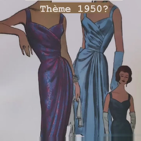 Slim skirt in two lengths with a draped overskirt. The skirt joins to a bodice at normal waist-line in front and dips slightly at the back. The bodice has a cinched wrap effect which is flattering across the stomach.