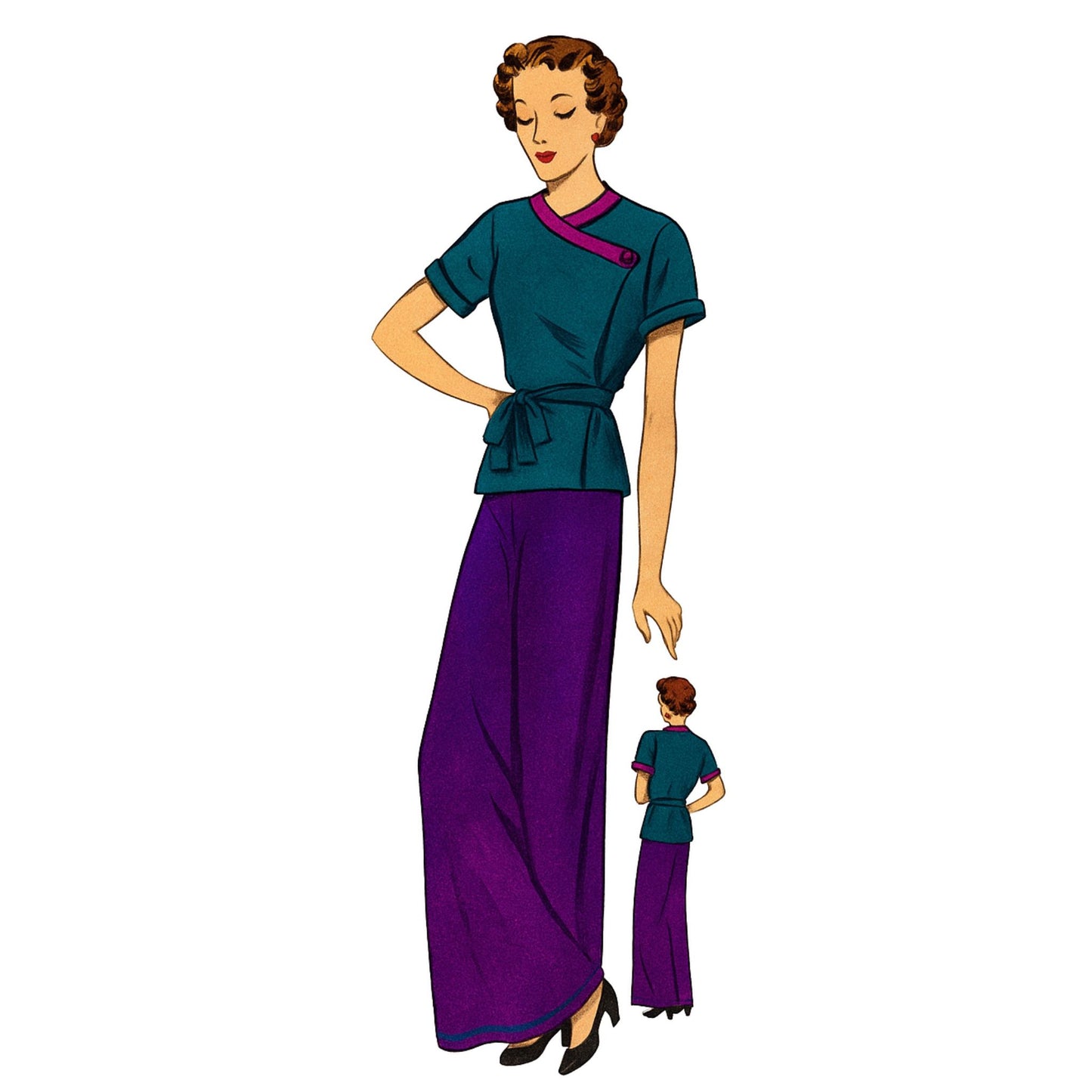30-talets eleganta strandpyjamasmönster